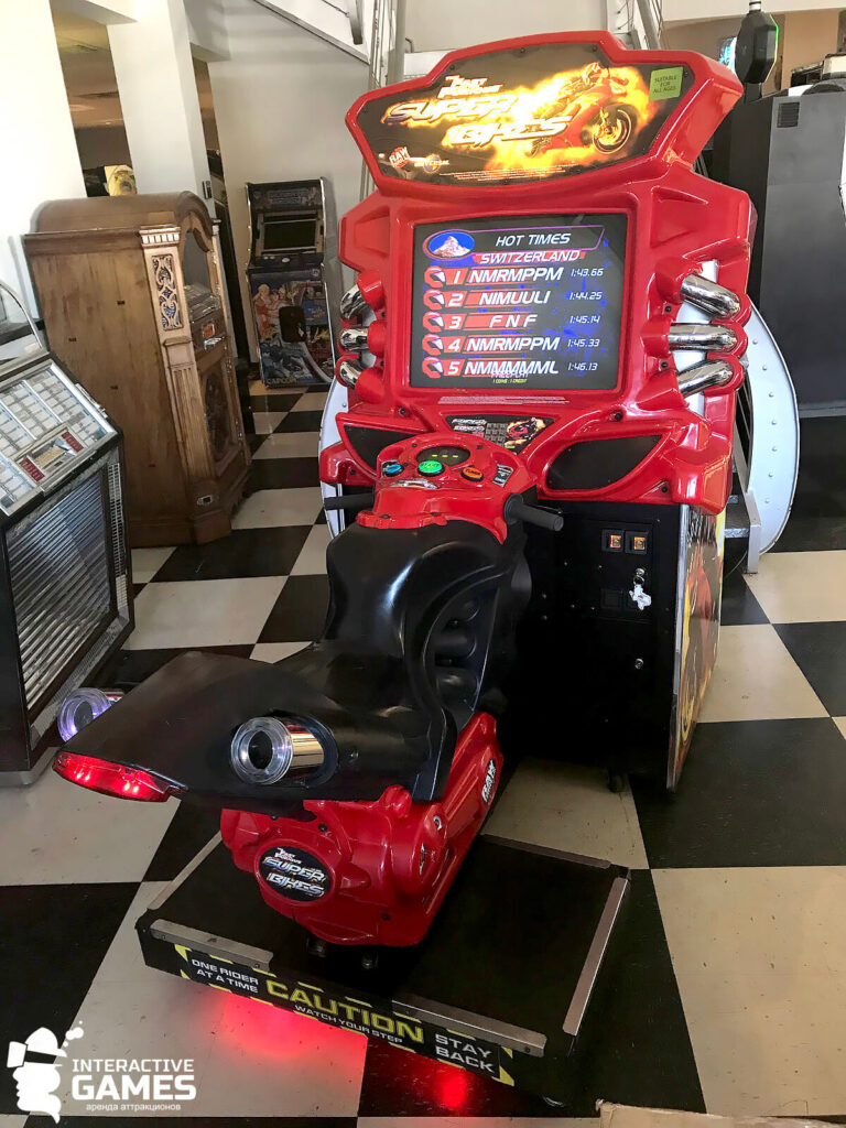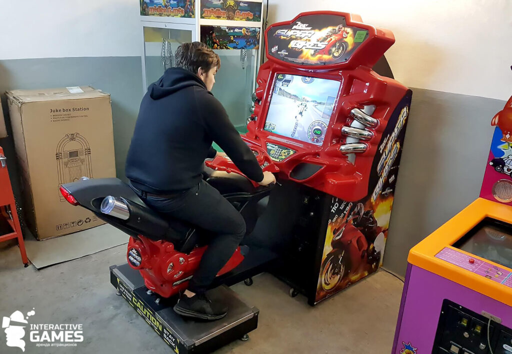 Аренда аттракциона Мото-симулятор подойдёт практически для любого тематического мероприятия. Играть на игровом автомате могут как самые маленькие (от 5 лет) так и взрослые без ограничений.
