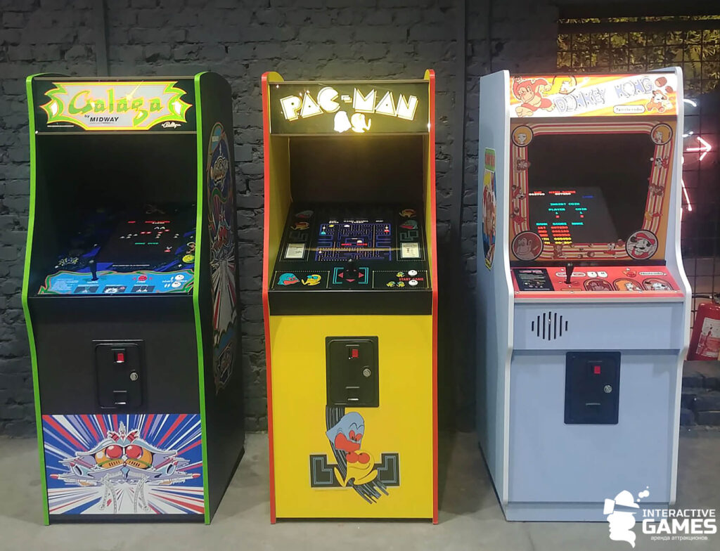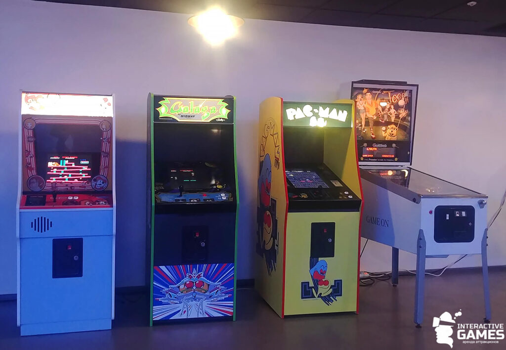 В наличии 8 аркадных автоматов: 2 универсальных (на 1 игрока и на 2 игроков, множество игр), а также оригинальные одиночные аркады Pac-man, Galaga, Donkey Kong, Mario, Street Fighter (на двоих), Mortal Kombat (на двоих).