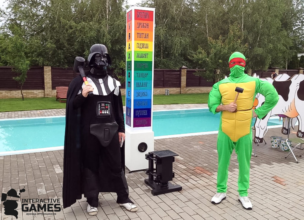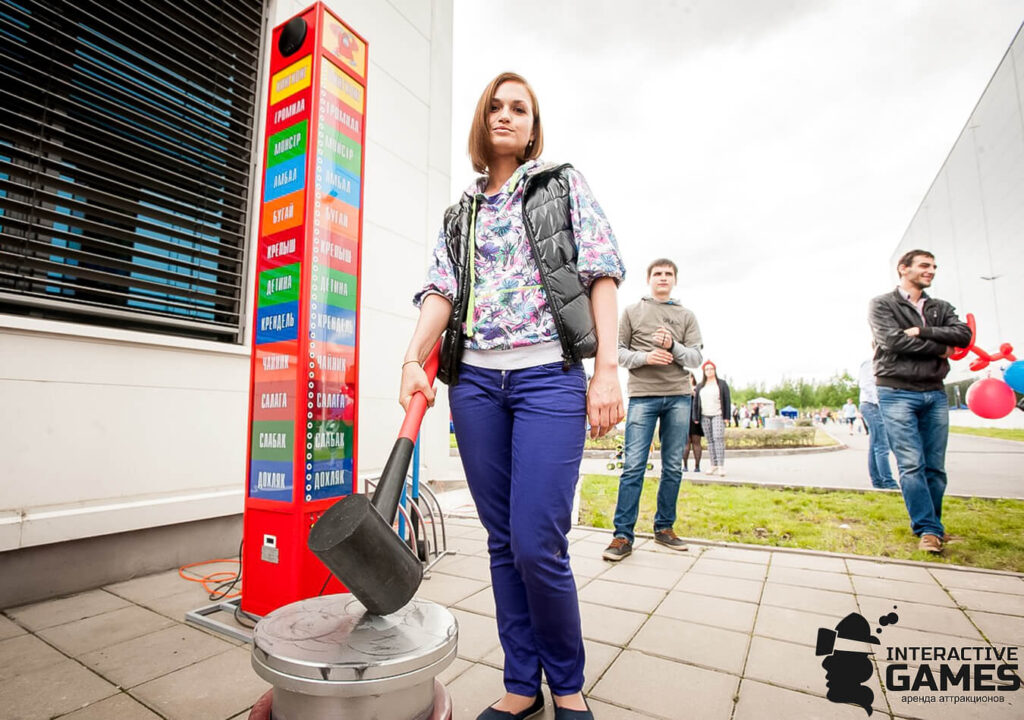 Если Вы планируете заинтересовать гостей Вашего праздника, то этот вариант максимально интересный. Ведь развлечение собирает много зрителей и желающих также попробовать ударить молотом.